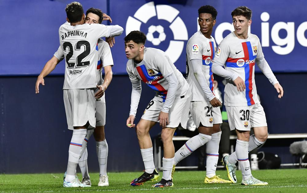 BARCELONA (AP) — El Barcelona se irá al parón por el Mundial de Qatar como indiscutible líder de la Liga española.Con un par de dianas de Pedri y Raphinha en el complemento, los azulgranas remontaron para vencer el martes 2-1 al Osasuna.