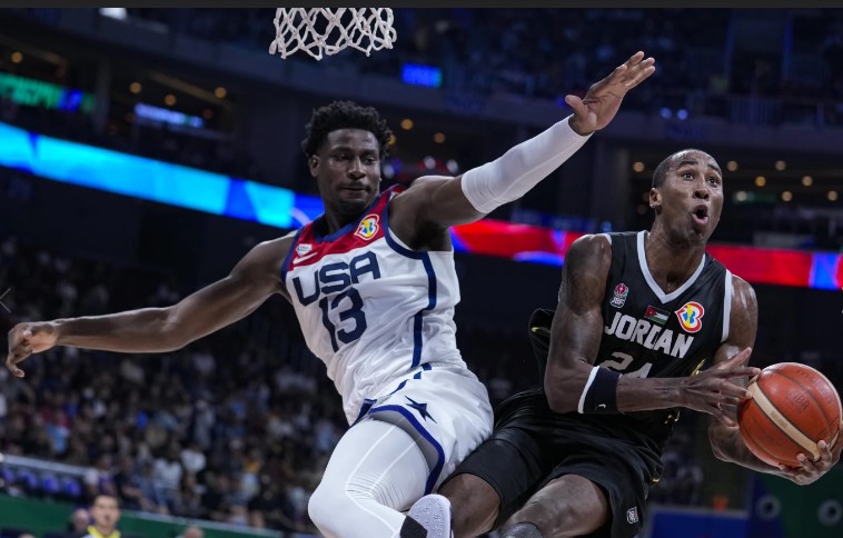 Jordan: Era la primera vez que Jordan jugaba contra Estados Unidos en una competición masculina senior. Los equipos estadounidenses vencieron a Jordania en los enfrentamientos de los Juegos Mundiales Universitarios en 1979 y 1985 (en ambas ocasiones por exactamente 110 puntos, no es un error tipográfico), y por 10 en el campeonato mundial U19 en 1995... Después de jugar contra Egipto el jueves, Jordania termina su estadía en la Copa del Mundo. contra México el sábado.