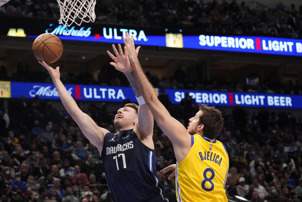 Luka Doncic anotó 26 puntos y Dallas celebró antes de retirar el número del jugador retirado, al imponerse el miércoles 99-82 sobre los Warriors de Golden State y un Stephen Curry inusitadamente errático.