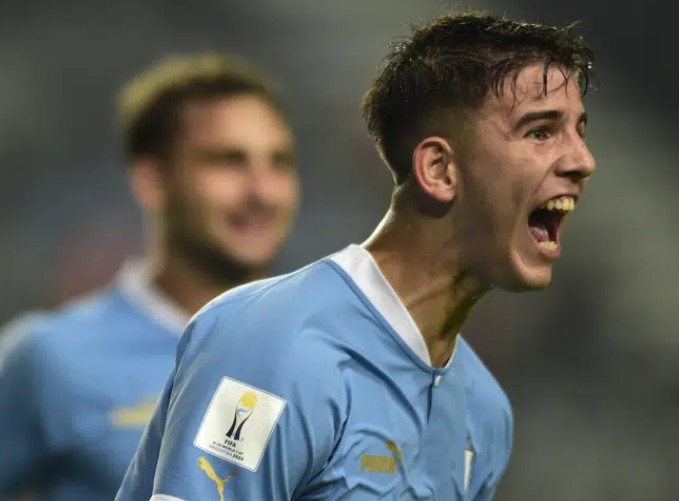 Uruguay, que se vio privada de su máxima figura Álvaro Rodríguez por la negativa del Real Madrid a cederlo, festejó el tercero en un tiro de esquina. El defensa Facundo González cabeceó sin marca, la pelota dio en el travesaño y rebotó en la espalda del arquero Hussein Hasan antes de meterse en su propia portería.