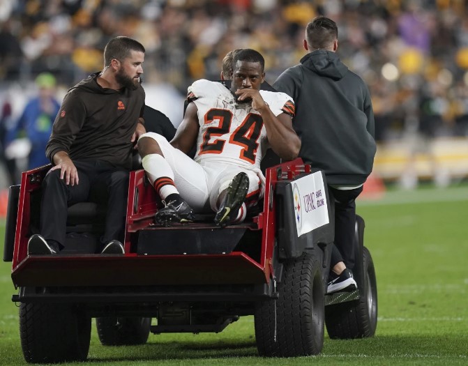 El cuatro veces Pro Bowler de 27 años ha sido una de las constantes de una franquicia que intenta establecerse como un contendiente perenne. Su sexta temporada en la NFL terminó en la segunda jugada del segundo cuarto cuando el profundo de los Steelers, Minkah Fitzpatrick, entró bajo para una entrada al final de una carrera de 5 yardas a principios del segundo cuarto y le dio un golpe a las piernas de Chubb. La rodilla de Chubb se dobló debajo de él.