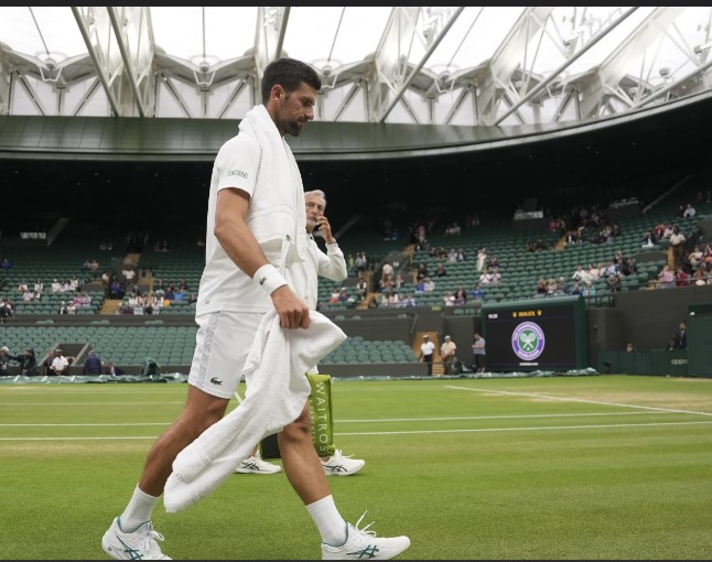 WIMBLEDON, Inglaterra (AP) — Con la lluvia cayendo afuera, Novak Djokovic se preparó para las semifinales de Wimbledon el viernes al practicar un poco bajo techo en la cancha número 1.