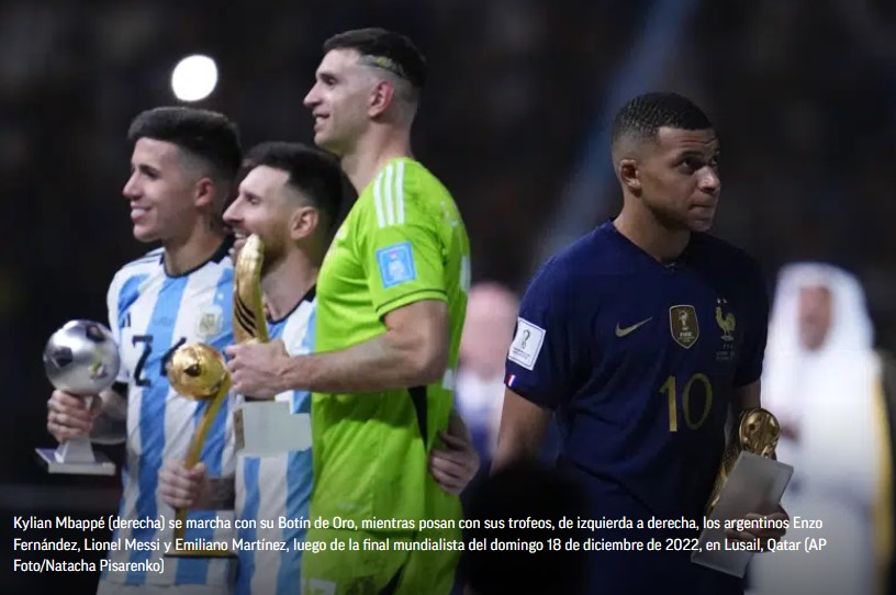 LUSAIL, Qatar (AP) — Kylian Mbappé firmó una tripleta en la final de una Copa del Mundial, fue el máximo goleador y se confirmó como la figura llamada a dominar la era post Lionel Messi.Pero el astro francés de 23 años acabó alicaído y derrotado en una épica final ante Argentina, zanjada por penales tras un empate 3-3 el domingo.