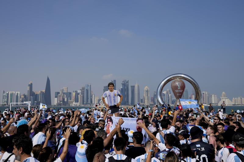 DOHA (AP) — A pesar de la distancia y el costo del viaje, cientos de fanáticos argentinos inundaron una de las atracciones turísticas de Doha para alentar a la Albiceleste en víspera del debut ante Arabia Saudí y ensayaron un repertorio de ingeniosas canciones con la que esperan motivar a Lionel Messi y sus compañeros.Con banderas y casacas albicelestes, los hinchas se reunieron el lunes en torno al reloj que lleva la cuenta regresiva del Mundial en el paseo marítimo de Corniche, una pasarela en forma de media luna alrededor de la bahía de Doha.