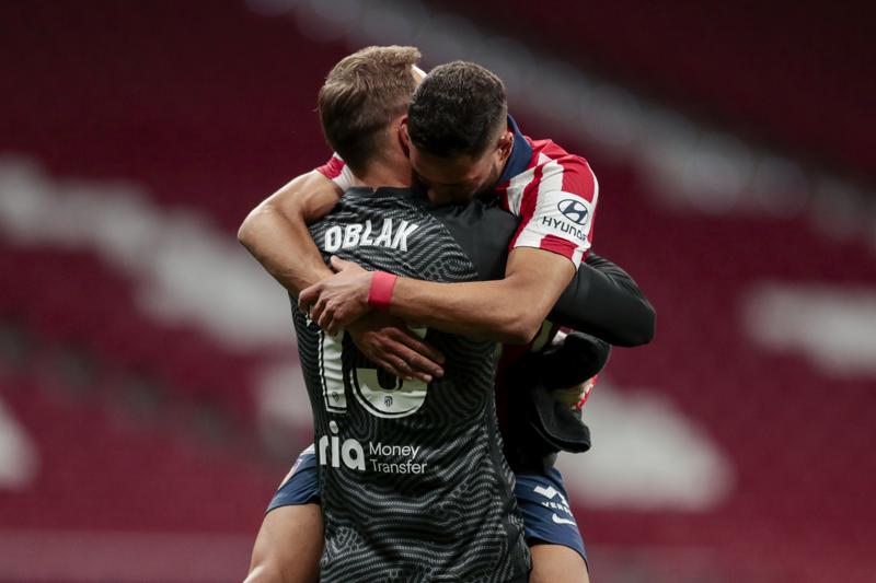 MADRID (AP) — Con el título de La Liga española a la vista, el Atlético de Madrid sobrevivió a la presión.Terminó pidiendo la hora, pero la sufrida victoria por 2-1 sobre la Real Sociedad lo acercó el miércoles a su primer cetro desde 2014.
