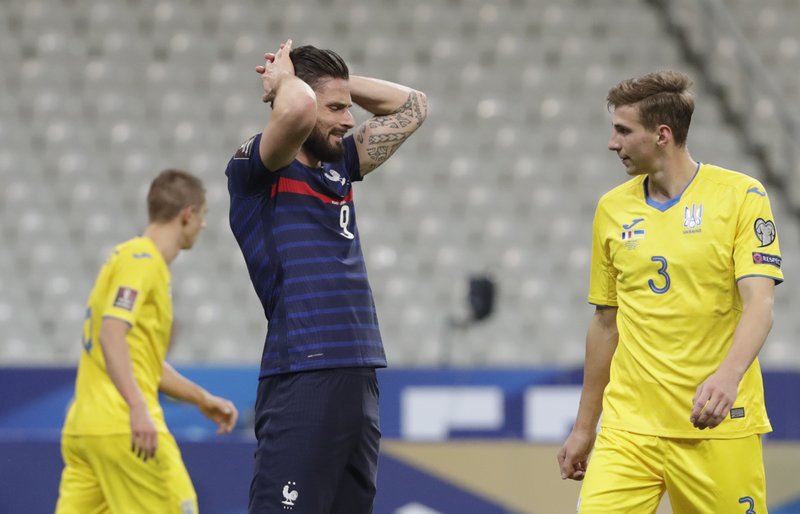 La selección francesa se resignó a un empate de 1-1 ante Ucrania en un Stade de France cuya tribuna permaneció vacía. Un autogol del defensa Presnel Kimpembe igualó el marcador, que abrió Antoine Griezmann por los locales a los 19 minutos.
