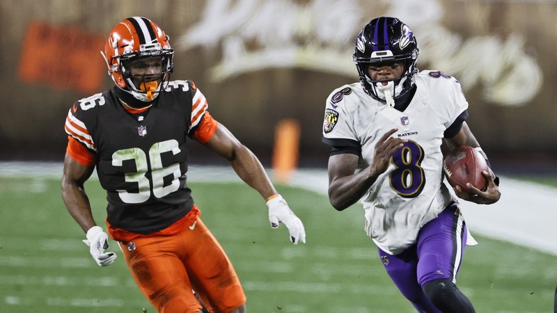 CLEVELAND (AP) — Lamar Jackson regresó del vestuario para sacar adelante el partido y muy probablemente la temporada de los Ravens de Baltimore.Al regresar a la cancha tras haber salido por calambres, Jackson lanzó un pase de 44 yardas para touchdown a Marquise Brown y posteriormente dejó listo el escenario para un gol de campo de 55 yardas de Justin Tucker a dos segundos del final, ayudando a los Ravens a apuntarse una apurada victoria el lunes de 47-42 sobre los Browns de Cleveland.