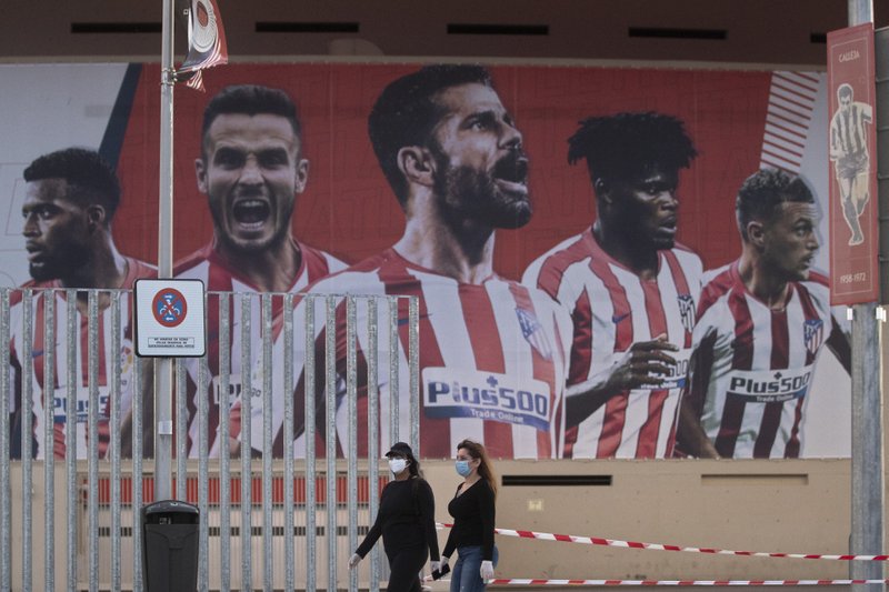MADRID (AP) — Dos integrantes de la expedición del Atlético de Madrid que se apresta viajar a Portugal para los cuartos de final de la Liga de Campeones dieron positivo en coronavirus el domingo.