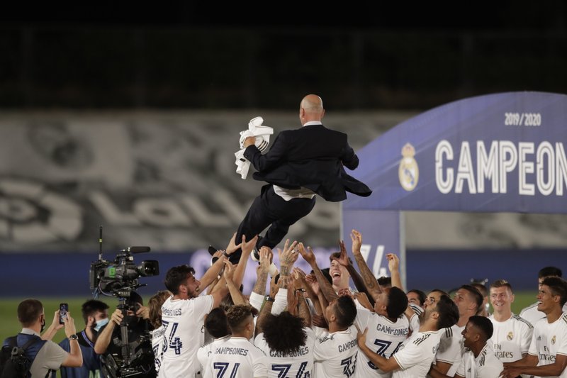 MADRID (AP) — Ahí estaba de nuevo Zinedine Zidane, lanzado al aire por sus jugadores del Real Madrid, en la celebración de otro título.