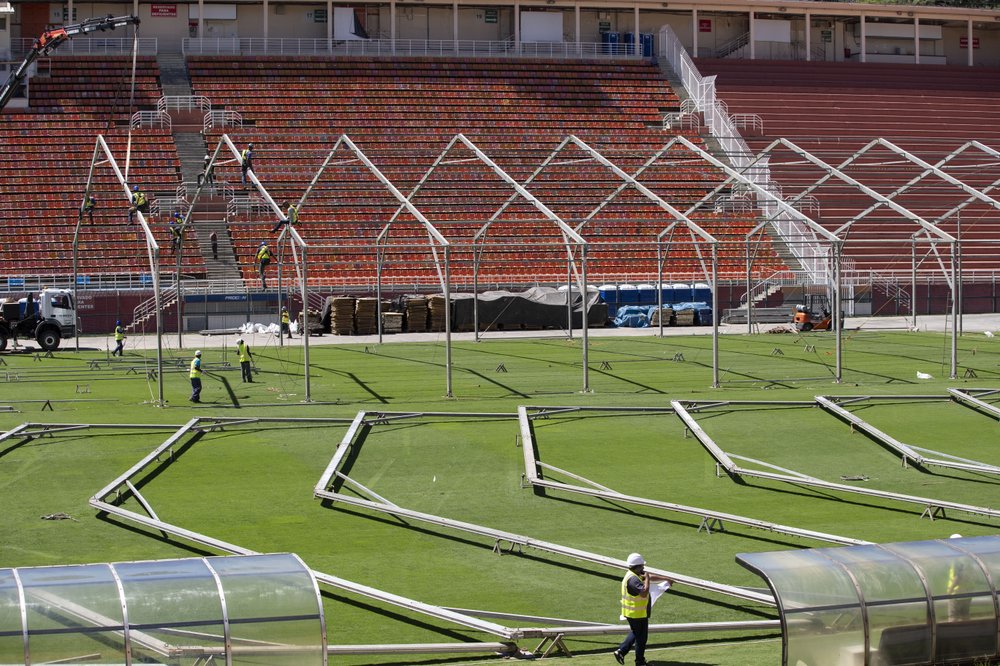 SAO PAULO (AP) — El estadio Pacaembu en el centro de Sao Paulo es objeto de una reconfiguración como un hospital de campaña para recibir a pacientes con el nuevo coronavirus.