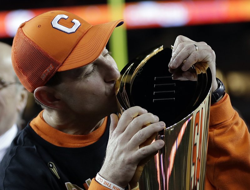 Dabo Swinney besó el trofeo del campeonato y proclamó a este equipo de Clemson como el mejor de todos los tiempos.