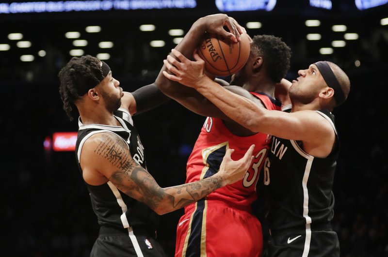 D'Angelo Russell tuvo 22 puntos y 13 asistencias, y los Nets acumularon una ventaja suficientemente grande con un primer tiempo de 73 puntos para contener a Davis y los New Orleans Pelicans, 126-121 el miércoles por la noche.