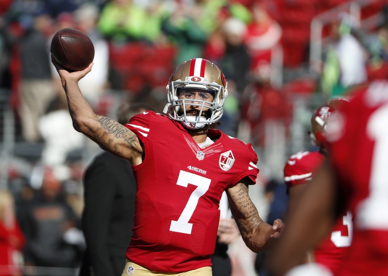 "¿No es obvio cuál es el motivo real?", Escribió el abogado de Kaepernick, Mark Geragos, en un correo electrónico a The Associated Press.Kaepernick, quien dirigió a los 49ers de San Francisco a una aparición en el Super Bowl, no ha jugado desde la temporada 2016, cuando comenzó a arrodillarse durante el himno nacional como una forma de protestar contra la brutalidad policial y la injusticia social y racial. Él presentó una queja contra la NFL el año pasado, diciendo que los propietarios de los equipos hicieron colusión para mantenerlo fuera de las listas.