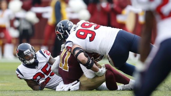 Smith sufrió la lesión cuando los defensivos de los Texans J.J. Watt y Kareem Jackson lo capturaron con 7:43 por jugar en el tercer periodo.