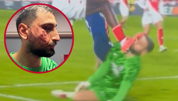 Las imágenes muestran que Donnarumma recibió un corte debajo del ojo derecho. Singo, que ya había sido amonestado, tuvo suerte de no recibir la tarjeta roja.
