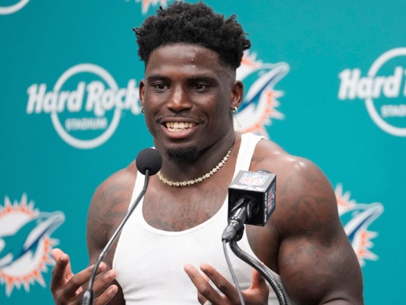 MIAMI GARDENS, Florida, EE.UU. (AP) — Tyreek Hill, de los Miami Dolphins, fue esposado y colocado boca abajo en una calle afuera del estadio del equipo luego de que lo detuvieran por exceso de velocidad y conducción imprudente el domingo por la mañana antes del primer partido de los Dolphins de la temporada , un incidente que dejó al receptor estrella desconcertado y resultó en que un oficial de policía fuera puesto en licencia administrativa.