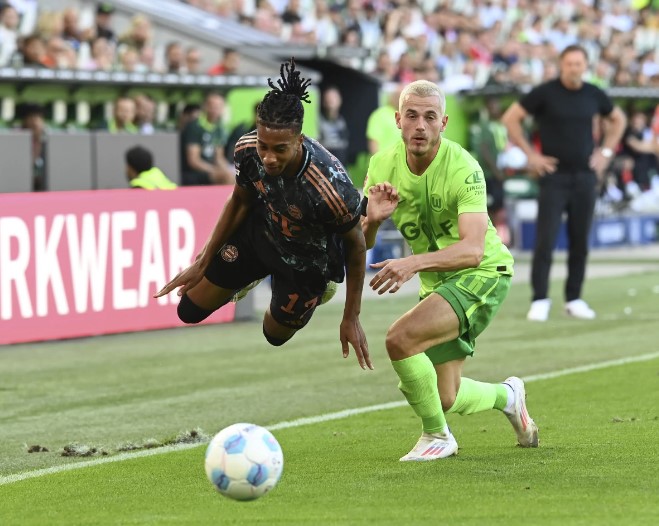 El Bayern dominó el partido durante el resto de la primera parte, pero el Wolfsburgo encontró la manera de remontar cuando Boey cometió una falta sobre Tiago Tomás justo después del descanso. Boey fue amonestado y Lovro Majer igualó el marcador desde el punto de penalti.