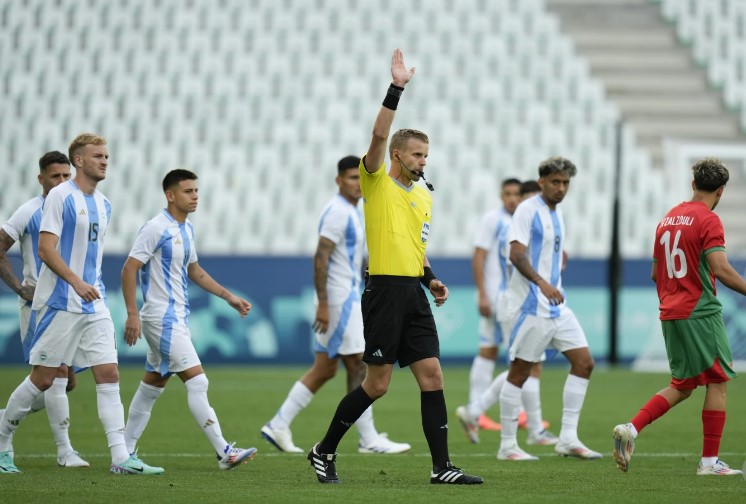 El partido en Saint-Etienne fue suspendido durante casi dos horas después de que los aficionados marroquíes irrumpieran en el campo y lanzaran botellas para protestar por lo que parecía ser un gol del empate de Cristian Medina en el minuto 16 del tiempo añadido.
