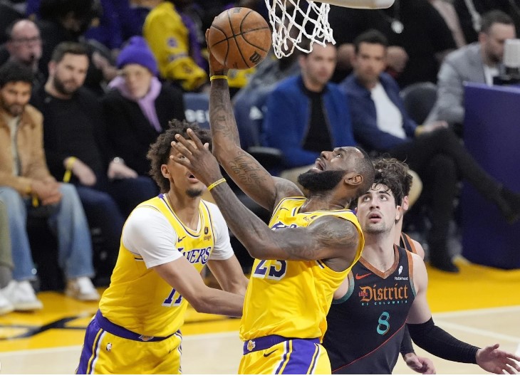 Los Wizards lideraron durante la mayor parte de los primeros tres cuartos y se recuperaron de un déficit de ocho puntos en el último. Washington lideraba 126-124 con 43 segundos restantes en el tiempo reglamentario después de que Poole anotó su quinto triple de la noche, pero Austin Reaves empató el marcador para Los Ángeles con un tiro en salto.