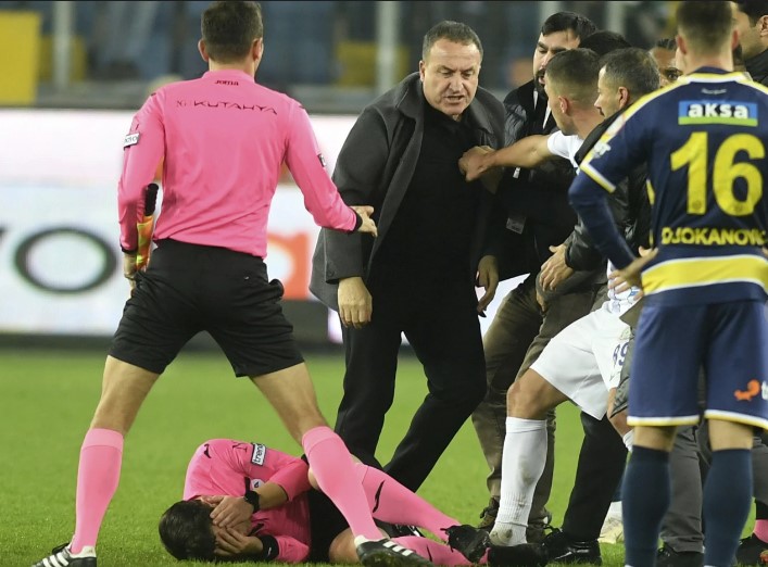 Halil Umut Meler fue hospitalizado tras ser atacado por el presidente del MKE Ankaragucu, Faruk Koca, al final de un partido el lunes. También recibió patadas de aficionados que invadieron el campo.