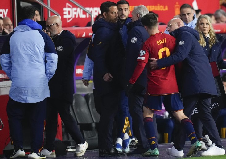 El entrenador de la selección nacional, Luis de la Fuente, ha sido criticado en los medios deportivos españoles por no sustituir a Gavi cuando su rodilla se dobló hacia adentro durante una colisión con un oponente. Siguió jugando durante unos minutos y se desplomó llorando antes de marcharse cojeando. Ahora pasará por una operación que probablemente también le descarte para España en la Eurocopa 2024.