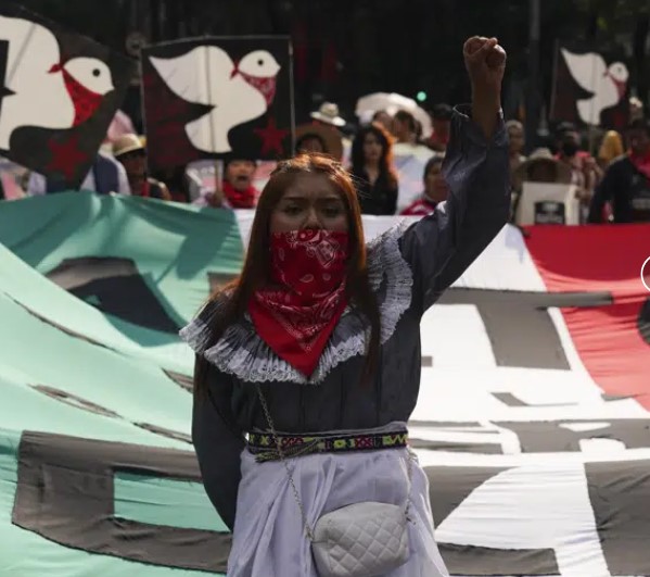 CIUDAD DE MÉXICO (AP) — Varios cientos de manifestantes salieron el jueves a marchar en el centro de la capital mexicana en rechazo a la violencia que se ha recrudecido en el estado sureño de Chiapas, donde a inicios de mes fueron asesinados siete indígenas desplazados.Levantando pancartas en las que se leía “alto a la guerra contra los pueblos zapatistas” y bajo la consigna “Chiapas no es cuartel, fuera el Ejército de él”, varios cientos de integrantes de organizaciones civiles e indígenas se movilizaron por el céntrico Paseo de la Reforma, rumbo al la plaza del Zócalo capitalino, para exigir al gobierno de Andrés Manuel López Obrador que tome acciones para contener la violencia en ese estado fronterizo con Guatemala.
