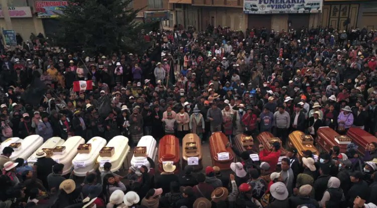 LIMA (AP) — Un policía murió calcinado en Perú en las protestas contra el gobierno, en la región de Puno, al ser atacado por manifestantes mientras patrullaba, según la explicación ofrecida el martes por las autoridades peruanas.Las manifestaciones, que comenzaron a inicios de diciembre pasado tras la destitución de Pedro Castillo como presidente, suman ya 47 muertos, según el recuento de la Defensoría del Pueblo: 39 civiles en la confrontación con fuerzas del orden, otros siete por accidentes de tránsito o eventos vinculados al bloqueo de vías y el policía caído.