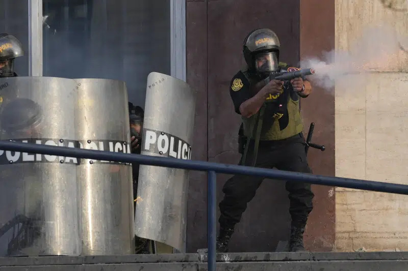 Cientos de personas se manifestaron en Lima, donde la policía usó gases lacrimógenos para repeler a los inconformes.