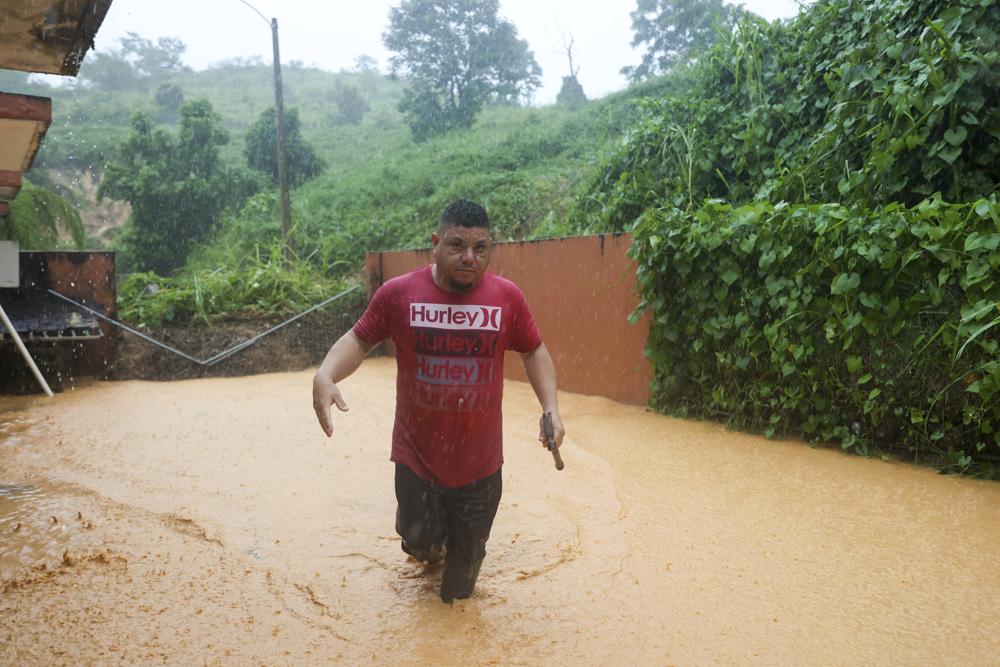 Un torrente marrón fluía por las calles, en las casas e incluso por una pista de aeropuerto en el sur de Puerto Rico.