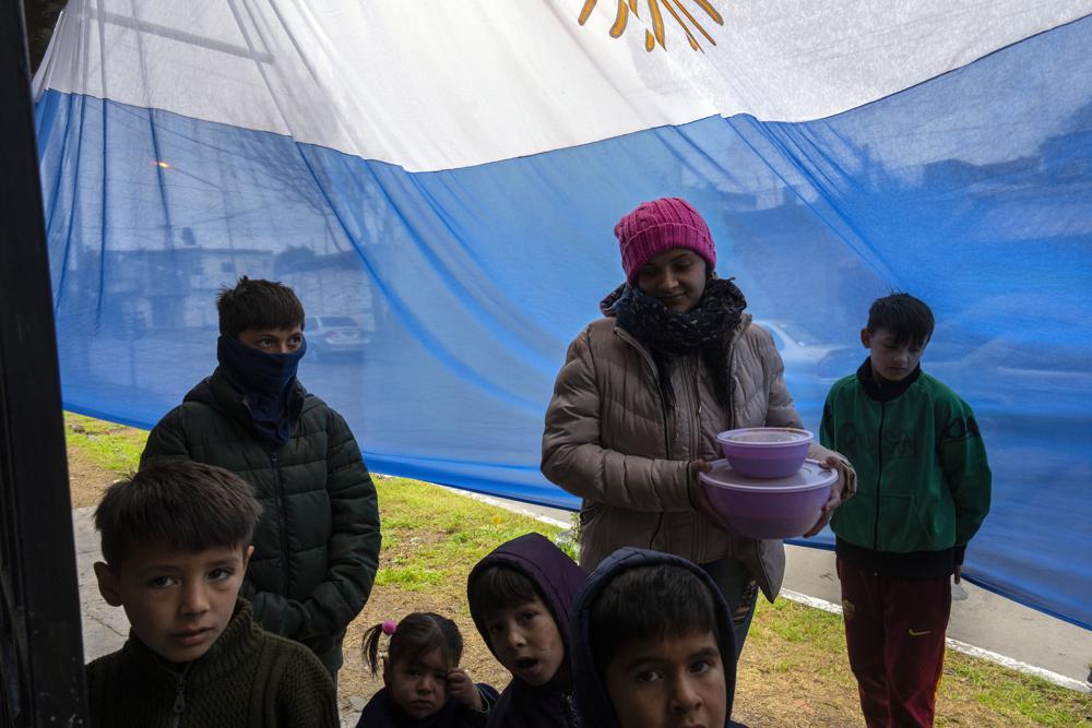 Al salir se dirige a su madre, Evelin Benítez, que lo espera cerca del comedor popular en el barrio Carmen de Alvear, en el municipio de Tigre y a más de 30 kilómetros de Buenos Aires. “Vengo porque tengo tres chicos y todo ayuda. Así como vengo acá después voy a buscar más allá comida”, dijo Benítez hace unos días a The Associated Press.