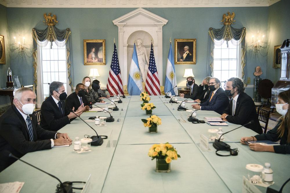 Cafiero le comunicó a Blinken que Argentina “ha emprendido una senda que pretende consolidar un crecimiento económico sostenible e inclusivo” y afirmó “que es necesario un mensaje de la autoridad política al Tesoro para contar con el apoyo de Estados Unidos en el Fondo Monetario Internacional, y que de este modo no se restrinja el crecimiento”, dijo un comunicado de la cancillería argentina.