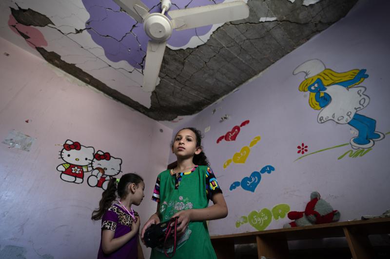 Las dos niñas sobrevivieron al ataque aéreo que destruyó un edificio cercano la madrugada del 19 de mayo, dos días antes de que un alto el fuego pusiera fin a los combates. Pero como muchos niños en Gaza, cargarán con el recuerdo de sus horrores y su devastación.