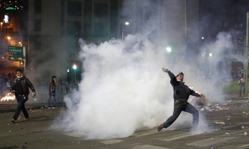 Sin embargo, por la noche, jóvenes se enfrentaron con la policía cerca del palacio de gobierno durante varias horas tras asistir a una protesta multitudinaria en el centro de la ciudad de La Paz. La policía arrojó gases lacrimógenos en un intento por dispersar a los manifestantes, y hubo dos heridos y tres detenidos, según medios locales.