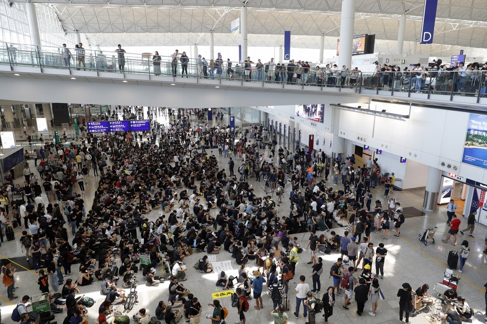 HONG KONG (AP) - Los activistas prodemocracia se manifestaron el viernes en el aeropuerto de Hong Kong luego de las autoridades que tratan de los visitantes que son bienvenidos en la ciudad pese al creciente nivel de violencia que rodea a las movilizaciones que hace dos meses