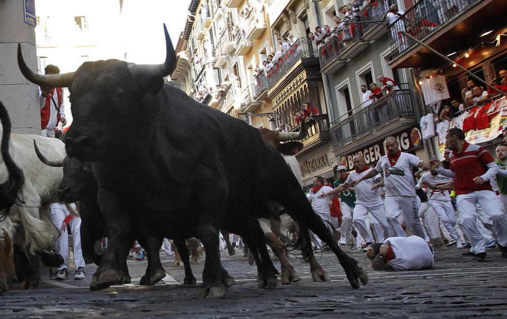PAMPLONA, España (AP) - La quinta corrida del festival de San Fermín de este año en la ciudad española de Pamplona presentó una cornada y un puñado de golpes duros después de una protesta de algunos juerguistas que se quejan de que la festividad tradicional está en peligro de perder su Emocionantes emociones.La carrera del jueves fue precedida por una protesta de un pequeño número de "corredores", que se sentaron en la calle antes de que los toros fueran liberados. Consideran que las corridas de toros de este año han carecido de la emoción habitual porque los toros se han quedado en gran parte detrás de los grandes novillos que rápidamente los guían por las estrechas y sinuosas calles de la plaza de toros de Pamplona, donde los toros serán asesinados en las corridas de toros más tarde en el día.