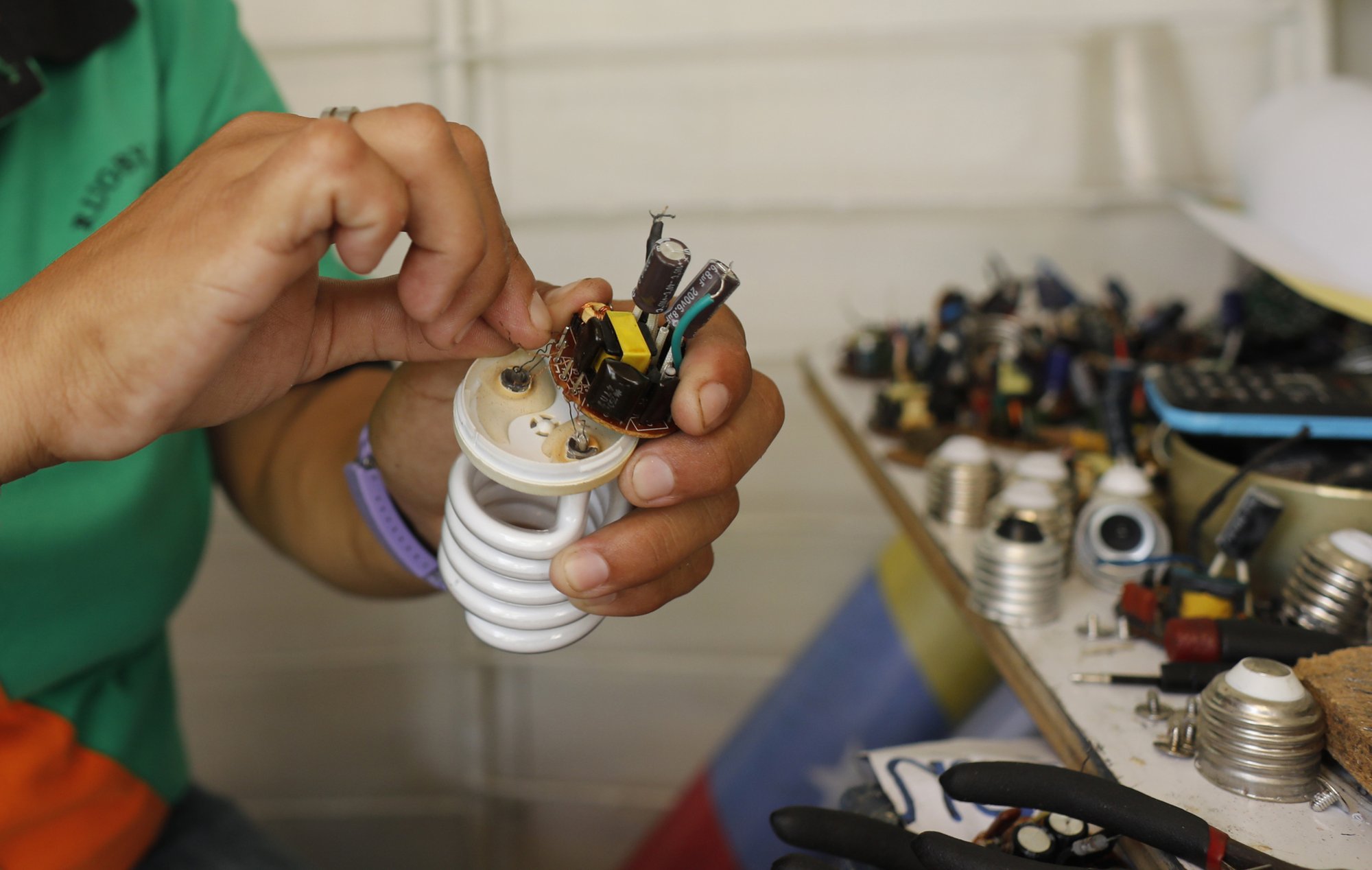 Según sus cálculos, una bomba fluorescente compacta nueva puede costar el equivalente a varios dólares en la moneda devaluada moneda venezolana, o el equivalente a casi el salario de un mes. Pese a esto, la calidad es tan mala que puede durar apenas una semana.Con una reparación, pueden funcionar durante más de seis meses más y por una parte de ese precio, explicó González.