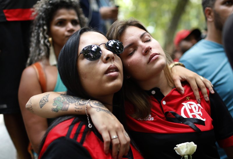 RIO DE JANEIRO (AP) - Cientos de personas afectadas por el dolor asistieron el domingo al funeral de Christian Esmerio Candido, de 15 años, uno de los 10 jóvenes futbolistas que murieron en un incendio en el campo de entrenamiento del club brasileño de fútbol Flamengo.Usando camisetas blancas con la foto de Candido, familiares, amigos y fanáticos del Flamengo cantaron el himno del equipo y cantaron "Flamengo, Flamengo" mientras acompañaban al ataúd en el cementerio Iraja de Río de Janeiro.
