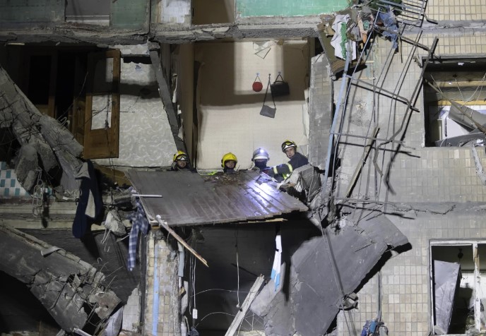 El miércoles por la noche, la bomba explotó entre el tercer y cuarto piso del edificio y provocó un incendio, según informó el gobernador regional de Járkov, Oleh Syniehubov. Los bomberos buscaban supervivientes entre el humo y los escombros.