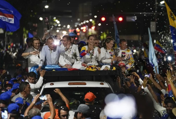 MARACAIBO, Venezuela (AP) — En la recta final de las elecciones presidenciales en Venezuela, la oposición se jugó el martes una importante carta con una movilización en la capital del estado de Zulia, que será decisivo en las votaciones del domingo por concentrar el mayor número de electores del país.Entre un mar de banderas venezolanas y al grito de “¡y va caer, y caer, este gobierno va caer!”, varios miles de personas se concentraron en una de las principales avenidas de la ciudad de Maracaibo para acompañar la caravana encabezada por la líder opositora María Corina Machado y el candidato de la coalición Edmundo González.