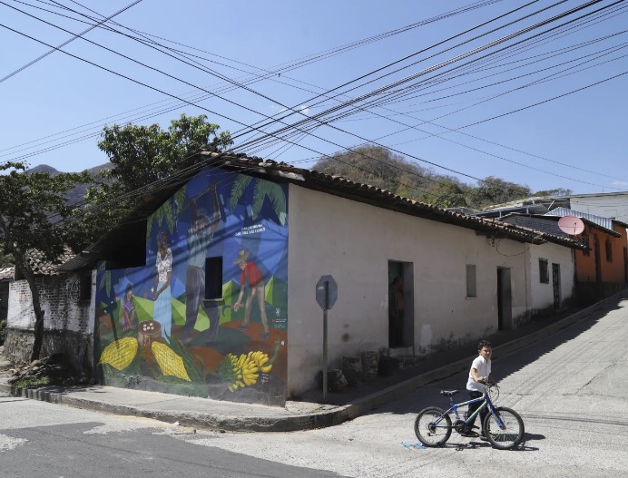 Hace poco, una pancarta azul brillante colgaba sobre una calle de esta ciudad instando a los votantes a apoyar al candidato del partido Nuevas Ideas de Bukele.