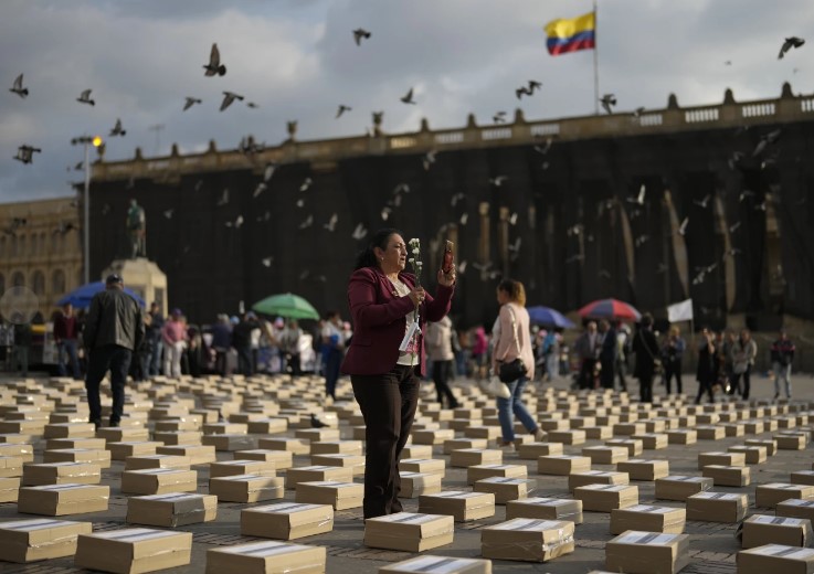 BOGOTÁ, Colombia (AP) — Con claveles blancos, cientos de colombianos marcharon el martes frente al Congreso para lamentar los asesinatos de líderes de derechos humanos y los asesinatos de cientos de excombatientes rebeldes asesinados después de firmar un acuerdo de paz con el gobierno que puso fin a cinco décadas. de guerra.La protesta fue organizada por grupos de derechos humanos que están cada vez más preocupados por los ataques contra civiles en zonas rurales de Colombia donde la violencia persiste a pesar de un acuerdo de paz de 2016 entre el gobierno y las Fuerzas Armadas Revolucionarias de Colombia, conocidas por sus siglas en español FARC, que había generó esperanzas entre los colombianos exhaustos por años de conflictos armados.