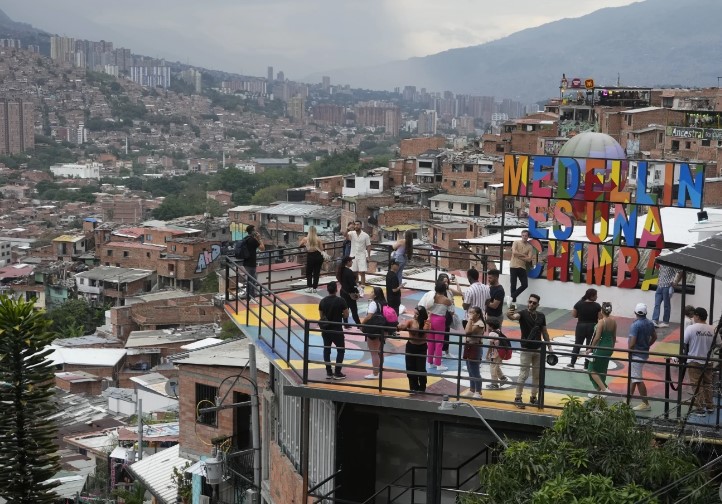 MEDELLÍN, Colombia (AP) — A las cinco de la tarde, con el sol por ocultarse, aún transitan decenas de turistas en las estrechas calles de un barrio de Medellín. Ola Aiyedun se detiene junto a sus amigos a tomarse una fotografía en esa zona que hace un par de décadas fue escenario de un cruento conflicto entre cárteles de la droga.Para el estadounidense de 38 años es toda una novedad. Viene del Bronx, en Nueva York, ávido de ver de primera mano lo que muestran las series de televisión de la segunda ciudad de Colombia.
