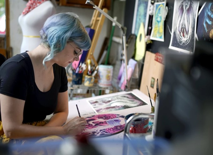 NUEVA YORK (AP) — Las pinturas en acrílico y acuarela de Kelly McKernan son atrevidas y vibrantes, y a menudo presentan figuras femeninas representadas en verdes, azules, rosas y morados brillantes. El estilo, en palabras del artista, es "surrealista, etéreo... que aborda la incomodidad en el viaje humano".La palabra “humano” tiene una resonancia especial para McKernan en estos días. Aunque siempre ha sido un desafío ganarse la vida como artista visual (y la pandemia empeoró las cosas), McKernan ahora ve una amenaza existencial proveniente de un medio que decididamente no es humano: la inteligencia artificial .