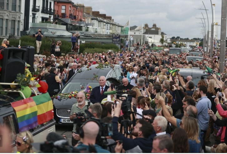 LONDRES (AP) — Multitudes de admiradores llenaron las calles de la antigua ciudad natal de Sinéad O'Connor en Irlanda para despedirse de la talentosa cantante mientras su cortejo fúnebre pasaba el martes después de un servicio conmemorativo privado.Una autocaravana VW antigua con parlantes en el techo que sonaban a todo volumen la canción de Bob Marley "Natural Mystic" condujo un coche fúnebre a paso de caminata a través de una gran multitud de admiradores a lo largo del paseo marítimo de Bray. O'Connor dijo que amaba la música de Marley.