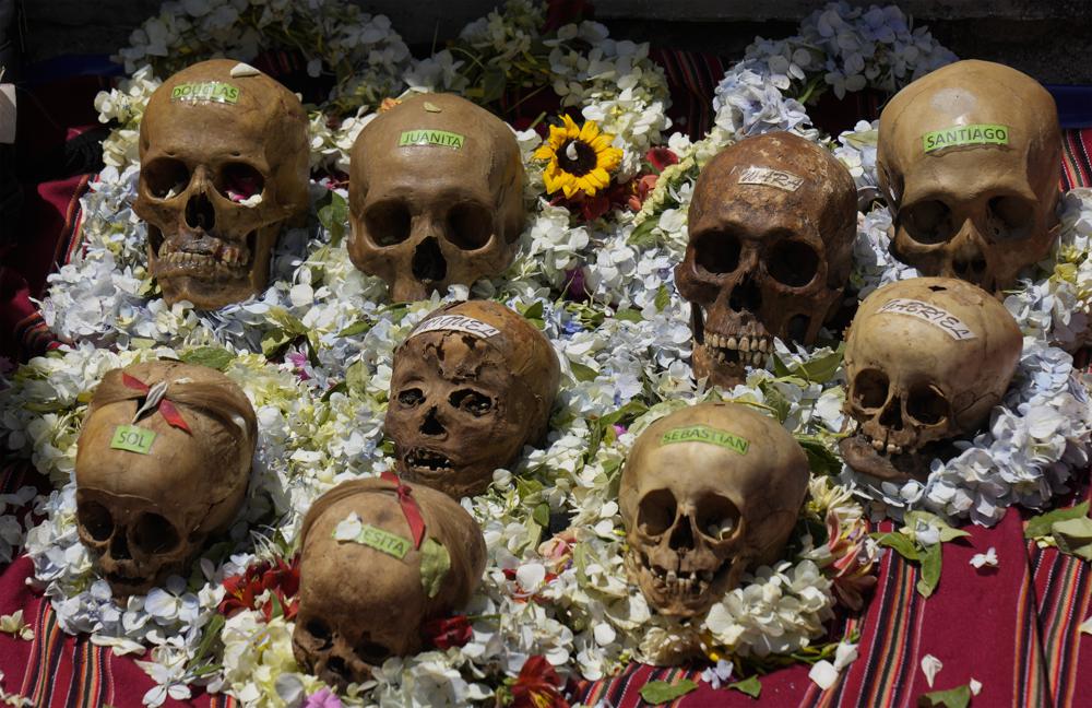 LA PAZ, Bolivia (AP) — Los cráneos humanos con coronas de flores llegaron en urnas adornadas al principal cementerio de La Paz, donde el martes tuvo lugar una celebración relacionada con la festividad de difuntos en la que se veneran las calaveras como si fueran santos católicos.