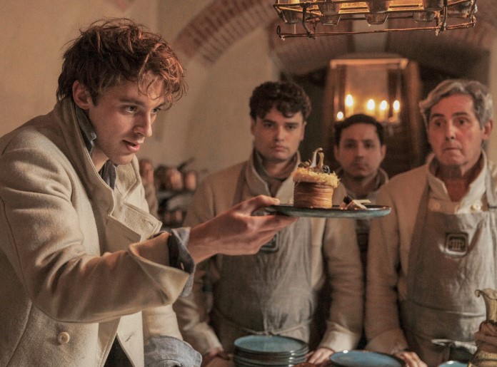 Benjamin Voisin, quien está en prácticamente todas las escenas, interpreta a Carême con una cabellera desaliñada, un pendiente de oro y un porte de chico malo conscientemente basado en Mick Jagger, alrededor de los años 70.