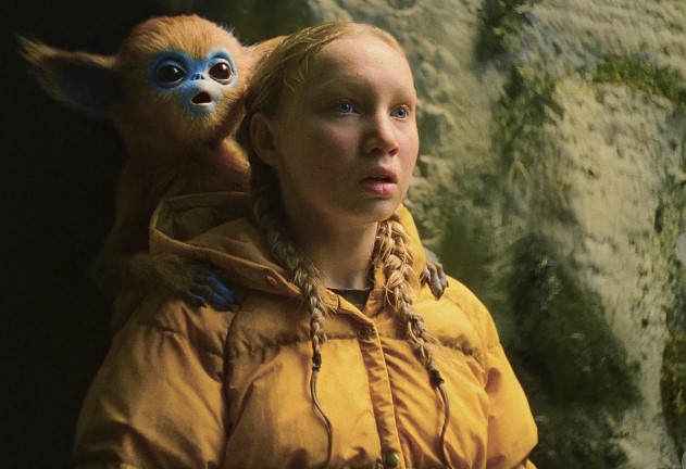 Helena Zengel ( “News of the World” ) es la heroína central, Yuri, que vive con su padre Maxim (Willem Dafoe) y un hermano de facto, Petro (Finn Wolfhard), en la boscosa y antigua isla de Carpathia. A Maxim le encanta cazar a los Ochi, una especie de primates que amenazan constantemente la seguridad de los humanos y sus granjas, y ha entrenado a un ejército de jóvenes para ayudar. Yuri se mantiene mayormente al margen, en parte para su protección, en parte, probablemente, porque Maxim es un macho alfa tempestuoso que se viste con una elaborada y antigua armadura para sus misiones. Su armadura es una chaqueta acolchada amarilla, sucia y de gran tamaño que podría doblarse como un saco de dormir. En casa, ella se encierra en silencio y escucha death metal en su habitación.