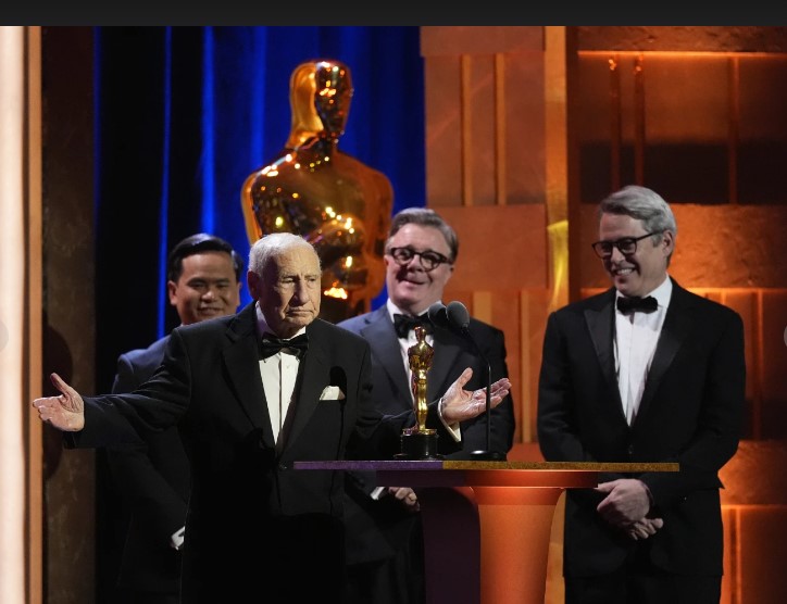 LOS ÁNGELES (AP) — Mel Brooks recibió su segundo Oscar el martes por la noche en una cena privada en el corazón de Hollywood. El evento, la 14ª edición de los Premios Gobernadores, no fue televisado, pero la multitud estuvo llena de estrellas, con figuras como Martin Scorsese, Christopher Nolan, Leonardo DiCaprio, Penélope Cruz, Natalie Portman, Bradley Cooper y Jon Batiste entre el público."Prometo no vender este", dijo Brooks.