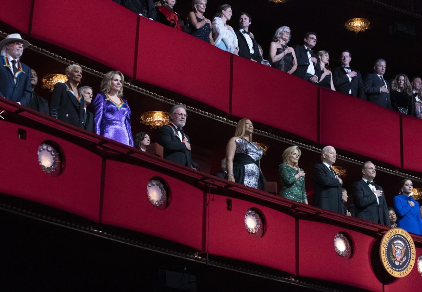 Luego, Biden y la primera dama Jill Biden se dirigieron al Kennedy Center para asistir a las festividades. La ceremonia comenzó con Gloria Estefan, homenajeada en el Centro Kennedy en 2017, dirigiendo un grupo de bailarines por el pasillo mientras interpretaba su mega éxito “Get On Your Feet”.