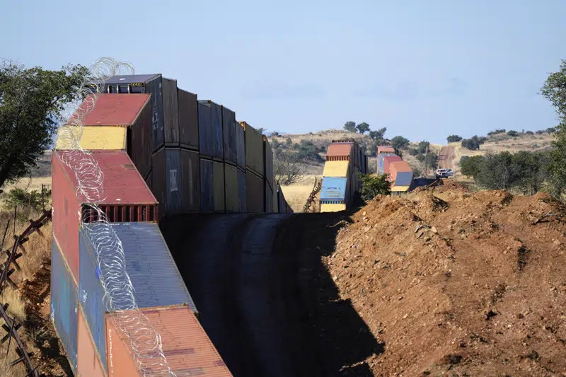 SAN RAFAEL VALLEY, Arizona, EE.UU. (AP) — Equipos de trabajo han colocado cientos de contenedores cubiertos por alambre de púas a lo largo de la remota frontera oriental de Arizona con México, en una osada demostración de protección fronteriza por parte del gobernador republicano Doug Ducey, incluso cuando se prepara para dejar el cargo.Hasta que los manifestantes ralentizaron, y luego detuvieron en gran medida el trabajo en los últimos días, Ducey siguió adelante a pesar de las objeciones del gobierno estadounidense, los ecologistas y la gobernadora entrante que lo considera un mal uso de recursos.